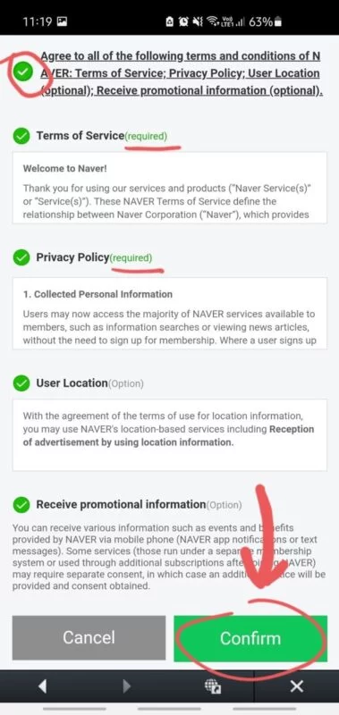 If you don’t want to share your user location or receive promotional information, you can tick just the first two required items and click Confirm.