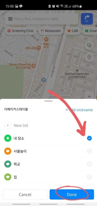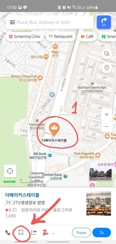 Although you can use the Naver Map App (Play Store/App Store) without a Naver account, logging in will save you lots of time by allowing you to save all your favorite places in various categories. You can save your home address, your school, your office and other places you visit frequently, and also build a bucket list of restaurants, cafes and places you would like to visit. You can also customize the categories whichever way you want to.