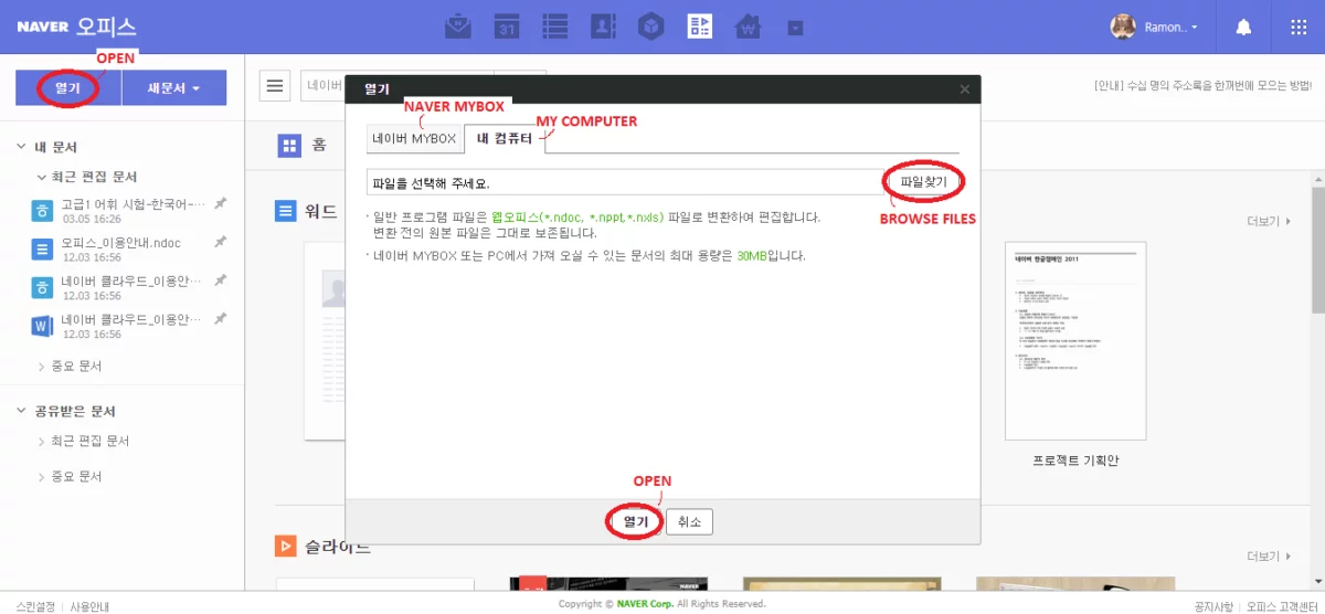 The only downside is that Naver Office is fully in Korean and the Google Chrome page translation function doesn’t seem to work on it, but it’s quite intuitive and easy to use if you can read a bit of Hangul. Check out the images below for a little guidance.